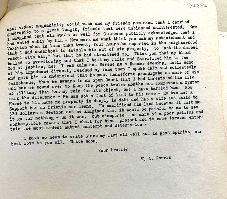 Warren writes to Sarah and Louisa in response to a letter he received from Sarah on April 7th, 1843, suggesting that he’s hostile towards his half-brother, Joshua (Sarah and Louisa’s full brother). Both Warren and Charles had experiences with Joshua that left them feeling that he was a freeloader and a swindler. Their relationship will be discussed in great detail in a later post.
