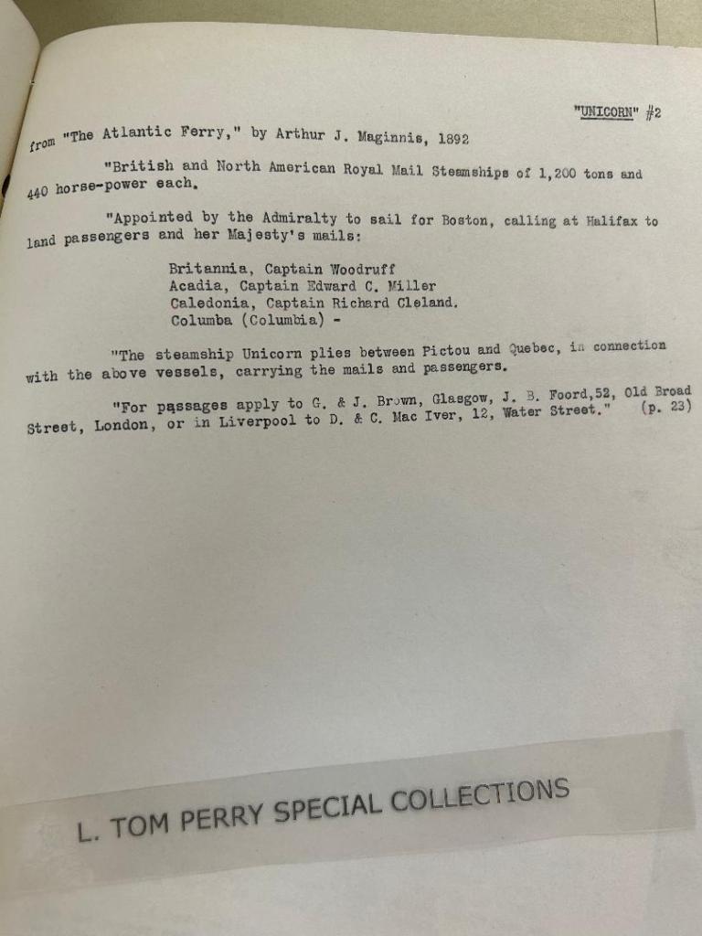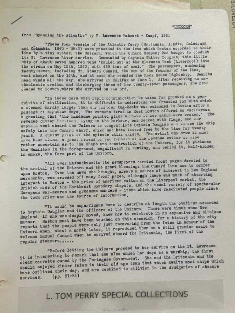 Below: Research collected by Walter McClausland on the “Unicorn” vessel.